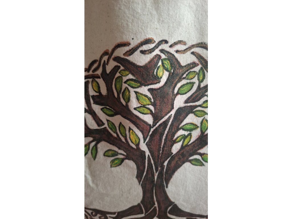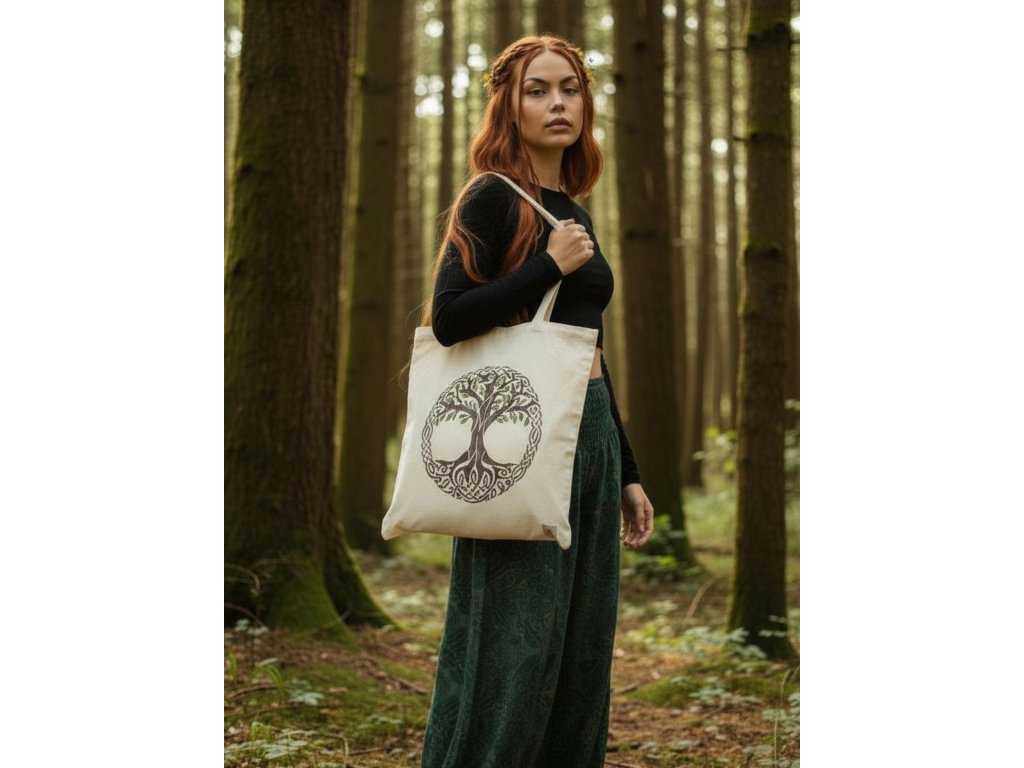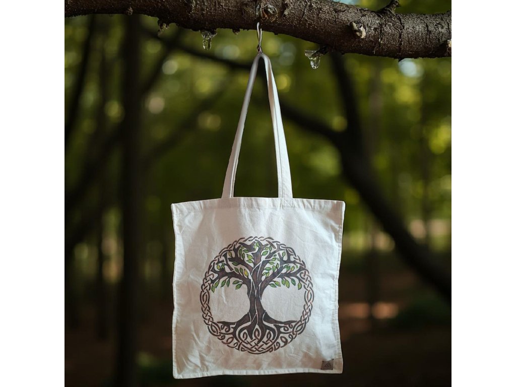 Tato ručně malovaná taška nese motiv Yggdrasilu – posvátného Stromu života, jenž propojuje svět lidí, bohů i duchů. Symbol znovuzrození, růstu a vnitřní síly z ní dělá tichého společníka pro ty, kteří cítí volání přírody a starých příběhů.