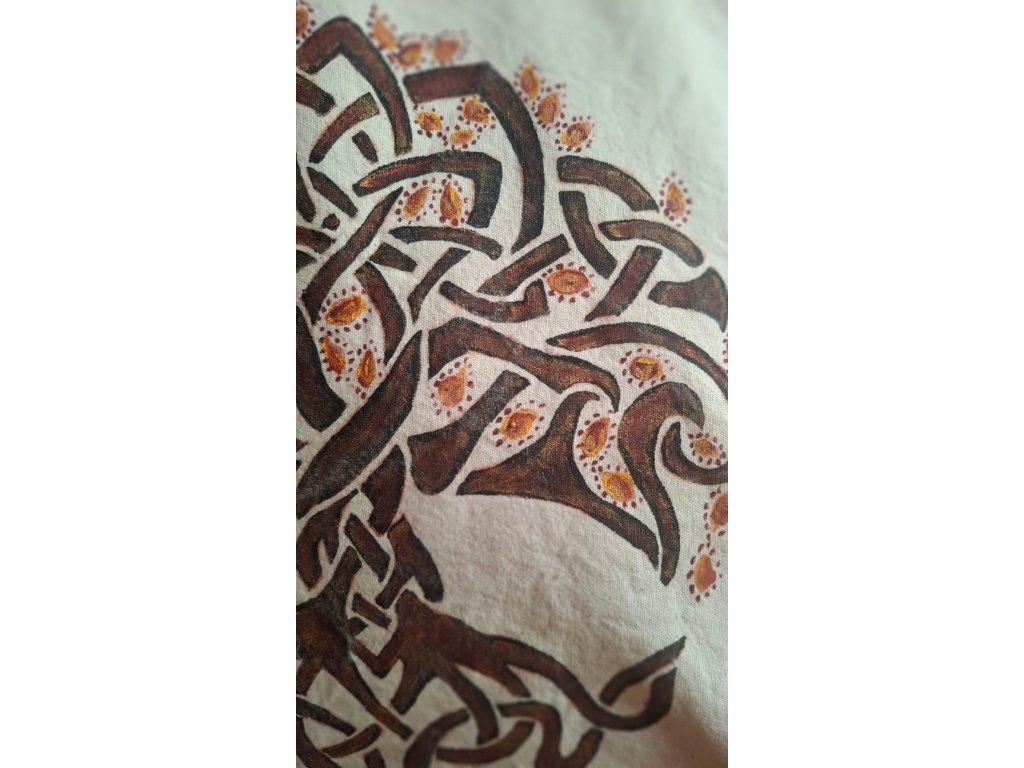 Tato ručně malovaná taška nese motiv Yggdrasilu, posvátného Stromu života ze severské mytologie. Symbol hlubokého propojení, vnitřní síly a proměny odráží ohnivou krásu podzimního listí i moudrost přírodních cyklů.