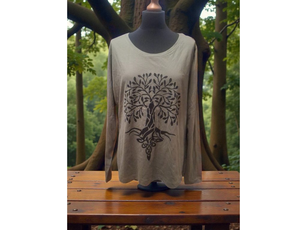 Ručně malované tričko s motivem Yggdrasilu ze základní řady — očištěné na to podstatné: tvar, symbol, přítomnost.